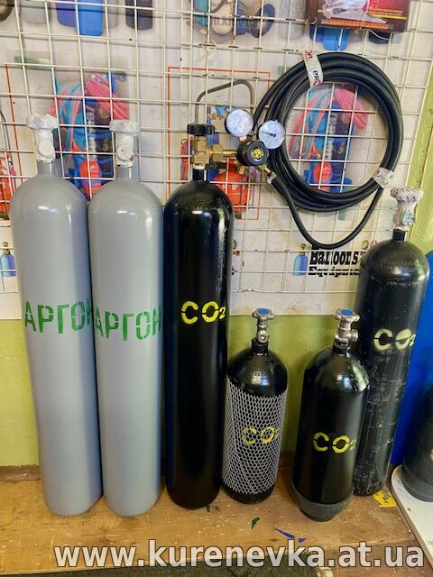 В комплекті Балон 10л, редуктор, рукав, хомути - повністю готовий до роботи. Найбільший асортимент Балонів заправлені газами Вуглекислота, Мікс, Аргон, Кисень, та інші. Досвідчені фахівці підберуть найоптимальніше обладнання, проведуть інструктаж по правилах промислової безпеки. Виконають доставку балонів і обладнання по Києву та області або по Україні через транспортні служби.